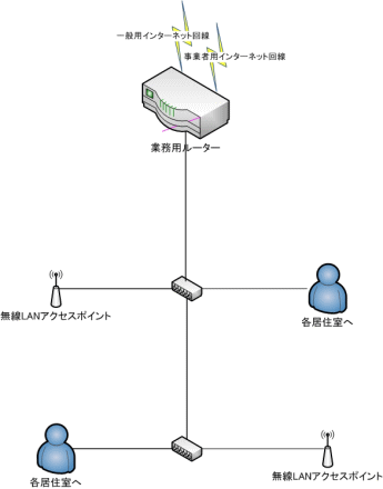 さらに、全居室をカバーする無線LANアクセスポイントを設置し、無線LANでの接続も可能となっています、